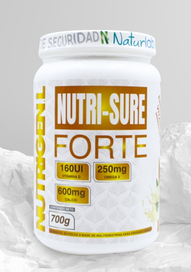 NUTRIGEN. L NUTRI-SURE FORTE: Alimento nutritivo perfectamente equilibrado en macronutrientes y micronutrientes para ayudar a complementar tu alimentación diaria, contiene además omega 3 con todos sus beneficios y un muy alto porcentaje de calcio que junto a la vitamina D nos ayudan a fortalecer nuestros huesos.