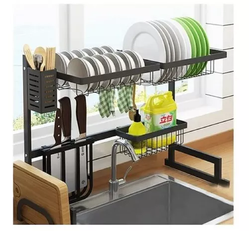 Escurridor de platos para usar sobre el lavaplatos, ahora espacio, metálico pintura horneada electrostática resistente a la oxidación.